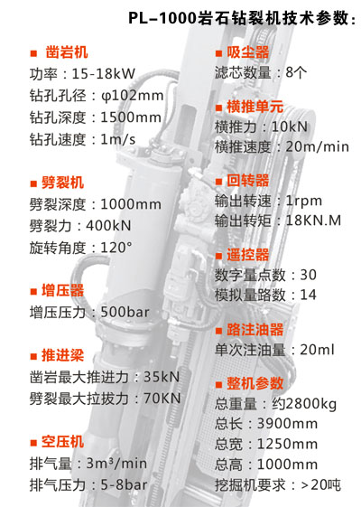 目前烈?guī)r科技有限公司生產(chǎn)的巖石鉆裂一體機(jī)已經(jīng)研發(fā)升級到第四代,PL1000型適配挖掘機(jī)噸位,25噸~38噸,日產(chǎn)噸位約1000噸;PL2000型適用挖掘機(jī)噸位:48噸~60噸,日產(chǎn)噸位約2000噸.
